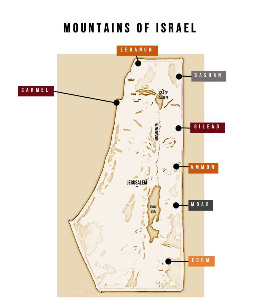 The phrase center of the earth is tabur haaretz in Hebrew. Haaretz means the land and tabur is a word that is only used twice in the Bible – once here, and once in Judges where it sounds like it means a place of high elevation since in Judges, people descend from tabur haaretz. This mention of high elevation matches what Ezekiel said earlier about the battle taking place in the mountains.